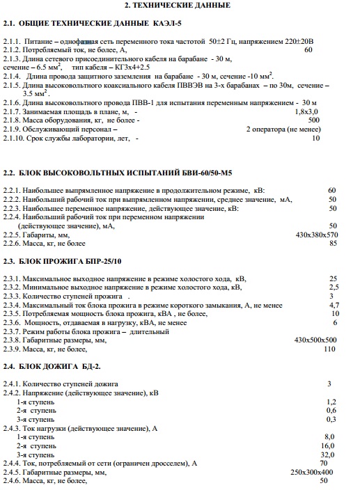 Загальні технічні дані, що входять до комплектації КАЕЛ-5: