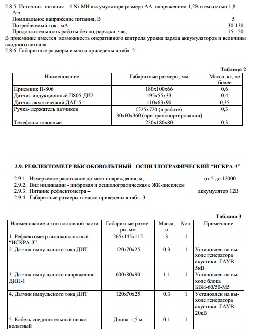 - Похибка визначення місця ушкодження (при глибині залягання кабелю 1 м) (м) (не більше): - електроакустичним методом – ±025; - індукційним методом (режим "петлі") - ±1.