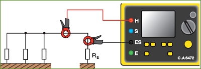 Використовуючи модуль С.А 6474 прилад С.А 6472 вимірює заземлення опор, навіть якщо опора є частиною паралельної системи заземлення. Без відключення опор.
