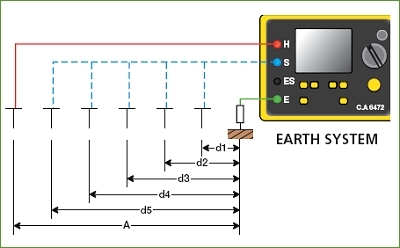 Прилад С.А 6472 розраховує питомий опір ґрунту автоматично методом Венера (Wenner) або Шлумбергера (Schlumberger) відразу після введення відстані між штирями.