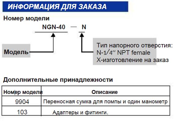ОСОБЛИВОСТІ - Портативність Вага приладу – близько 3 кг Номер моделі NGN-40 - N Тип напірного отвору: N-1 4'' NPT female X-виготовлення на замовлення - Висока роздільна здатність 10 Па (01 мбар) Високоякісний гвинтовий прес для точного настроювання тиску Модель - Висока стабільність Спеціально розроблений запірний клапан робить тиск максимально стійким під час проведення калібрування. Додаткове приладдя Номер моделі Опис - Мінімальне технічне обслуговування Вбудований газорідинний ізолятор захищає насос від вологи та бруду - Легкість в експлуатації Тиск може бути встановлений і відрегульований точно та швидко за допомогою простого повороту рукоятки - Гвинтові конектори Дозволяють легко підключатися та вимикатися до пневматичній помпі без необхідності застосування тефлонової підмоткової стрічки або гайкових ключів ЗАСТОСУВАННЯ Ручна пневматична помпа NGN-40 розроблена для генерації тиску від 95% вакууму до 40 бар для додатків, що вимагають точного вимірювання тиску та калібрування. Він може бути використаний для калібрування манометрів великого розміру, датчиків чи інших вимірювальних приладів тиску.