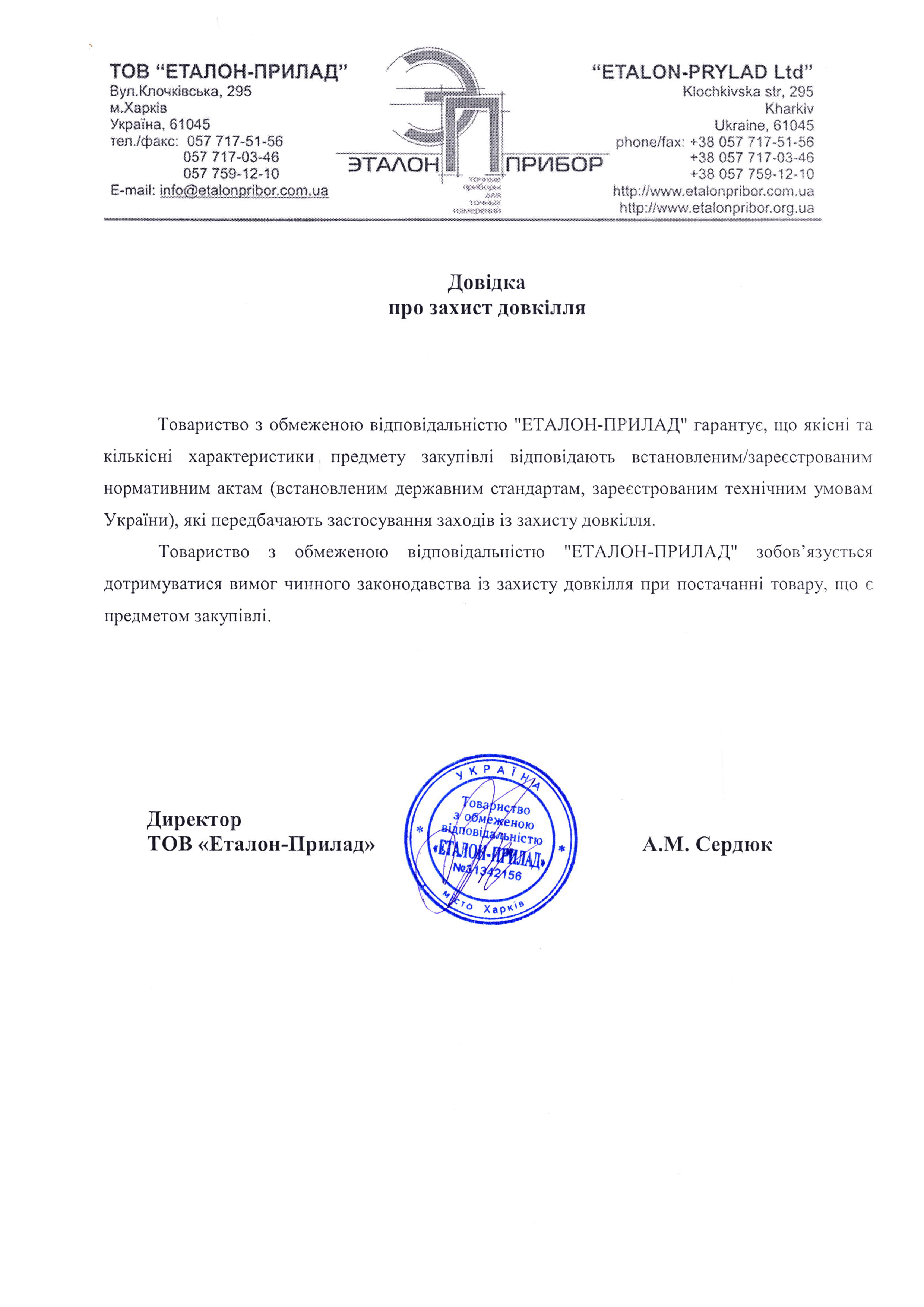 Довідка про захист довкілля![]() Скачать файл |