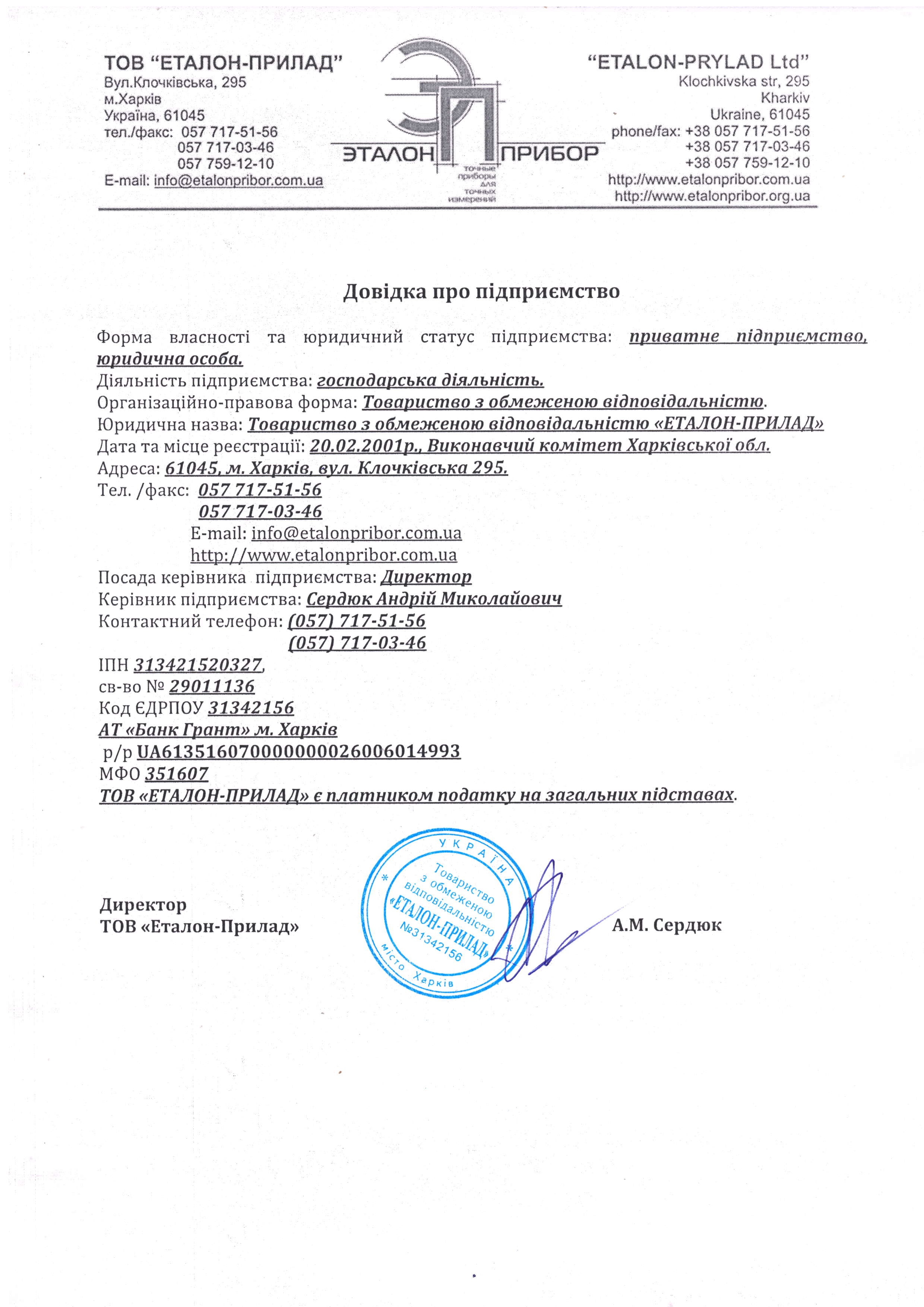 Довідка про підприємство![]() Скачать файл |